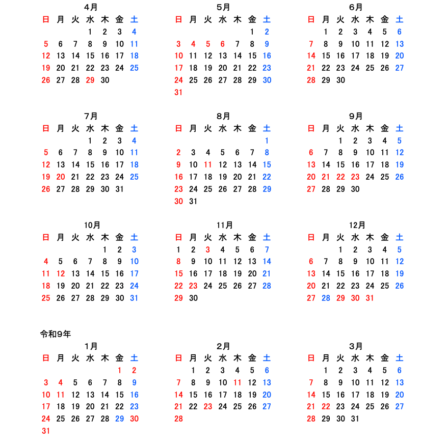 | 月 | 火 | 水 | 木 | 金 | 土 | |